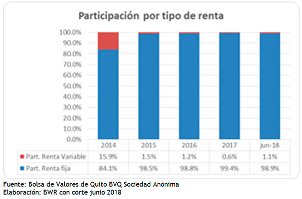 Consistente con la cultura empresarial ecuatoriana, con empresas familiares de capital cerrado, el mercado ecuatoriano tiene un enfoque hacia títulos de renta fija. Entre estos los de mayor negociación son los certificados de tesorería (CETES), certificados de inversión y de depósito. Los títulos de renta variable se mantienen presentes, dentro de los cuales la acción de mayor negociación en mercado es la de Corporación Favorita.